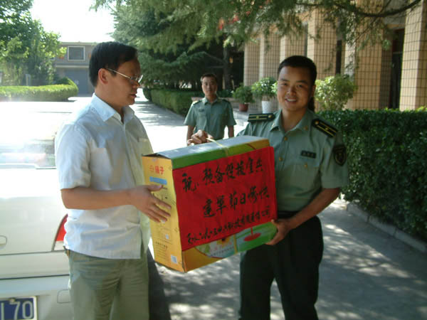 7410027月28日,公司黨政工團(tuán)帶上節(jié)日慰問品深入68202部隊(duì)通信營、通信科及天水陸軍預(yù)備役旅進(jìn)行了節(jié)日慰問。 作為一個(gè)原軍隊(duì)企業(yè),對(duì)部隊(duì)?wèi)延幸环莞裢馓厥獾母星椋嗄陙?,公司?jiān)持每年通過會(huì)議座談、文藝聯(lián)歡、籃球比賽、幫助部隊(duì)檢修通信設(shè)備、進(jìn)行業(yè)務(wù)技術(shù)培訓(xùn)等不同形式開展軍民雙擁共建活動(dòng)。這些活動(dòng)不管是從形式內(nèi)容上,還是在效果作用上,都達(dá)到了民擁軍,軍愛民,軍民共建和諧社會(huì),共同促進(jìn)發(fā)展的目的。這次公司帶著文體及文化生活等用品到部隊(duì)進(jìn)行節(jié)日慰問,不僅表達(dá)了公司對(duì)部隊(duì)官兵節(jié)日慰問的真摯感情,還就如何進(jìn)一步推進(jìn)雙擁共建活動(dòng)的形式和領(lǐng)域進(jìn)行了暢談和交流。