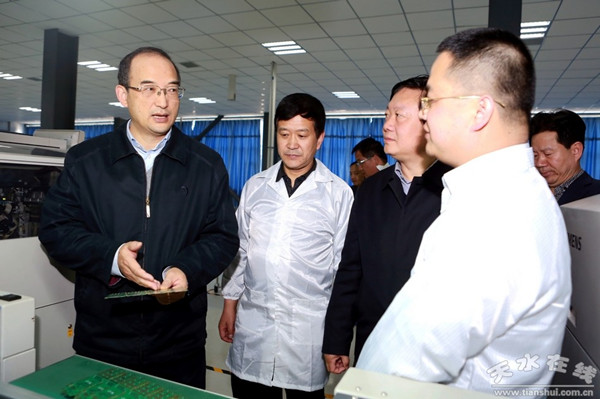 在聽取我公司匯報和現場查看后,黃副省長對我公司提出了希望和建議:要進一步加快轉變發(fā)展方式,加大科技創(chuàng)新力度,進一步提升產品的核心競爭力和企業(yè)的市場競爭力,努力把企業(yè)做大、做強,要圍繞企業(yè)發(fā)展需要,認認真真、扎扎實實地做好各項服務工作。甘肅省工信委副主任、國防科工局局長胡宗杰,甘肅省工信委副主任王海峰,天水市委副書記、市長楊維俊,市委常委、副市長張明泰一同調研,公司總經理侯重民、黨委書記王輝同志進行了陪同。