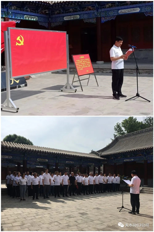 7月1日,各黨支部組織所屬黨員到公司門口廣場(chǎng),面對(duì)黨旗重溫入黨誓詞,通過(guò)重溫入黨誓詞來(lái)回顧和牢記我們每個(gè)黨員入黨時(shí)的莊嚴(yán)承諾,通過(guò)重溫入黨誓詞,時(shí)刻提醒自己所肩負(fù)的神圣使命和責(zé)任,不斷強(qiáng)化每個(gè)黨員對(duì)黨的忠誠(chéng)及對(duì)共產(chǎn)主義事業(yè)的不懈追求。面對(duì)鮮紅的黨旗,每位黨員高舉右手,再次莊嚴(yán)宣誓?!拔抑驹讣尤胫袊?guó)共產(chǎn)黨……隨時(shí)準(zhǔn)備為黨和人民犧牲一切,永不叛黨?!?廠區(qū)一次次的回蕩著各支部黨員堅(jiān)定而有力的聲音,鏗鏘恢宏的誓詞,強(qiáng)烈震撼著在場(chǎng)的每一位黨員,一字一句,神圣而豪邁,體現(xiàn)了公司每位黨員堅(jiān)定的政治信念和對(duì)中國(guó)共產(chǎn)黨的無(wú)限忠誠(chéng)。