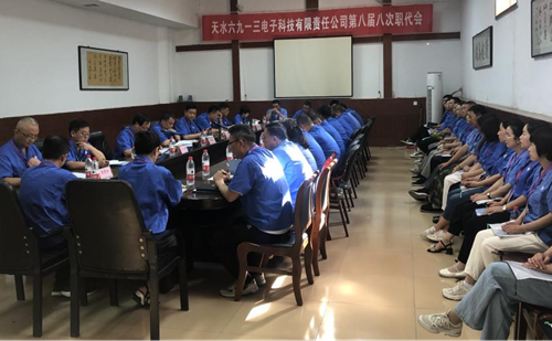 7410022022年8月13日上午,天水六九一三電子科技有限責(zé)任公司第八屆八次職工代表大會在公司大會議室隆重召開。公司領(lǐng)導(dǎo)王輝、王治軍、胡軍成、陳太廷、頡海浪、盧歲平、李景林及43名職工代表參會,大會主席團(tuán)成員、黨委副書記、工會主席楊鋒主持大會。