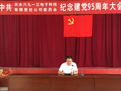 7月1日,天水六九一三電子科技有限責任公司慶祝中國共產(chǎn)黨成立95周年紀念大會、“兩學一做”主題黨課暨詩歌朗誦比賽在公司禮堂隆重召開。會議由總經(jīng)理侯重民同志主持,在家公司黨委委員、公司領導、班子成員及全體黨員參加了此次紀念大會。